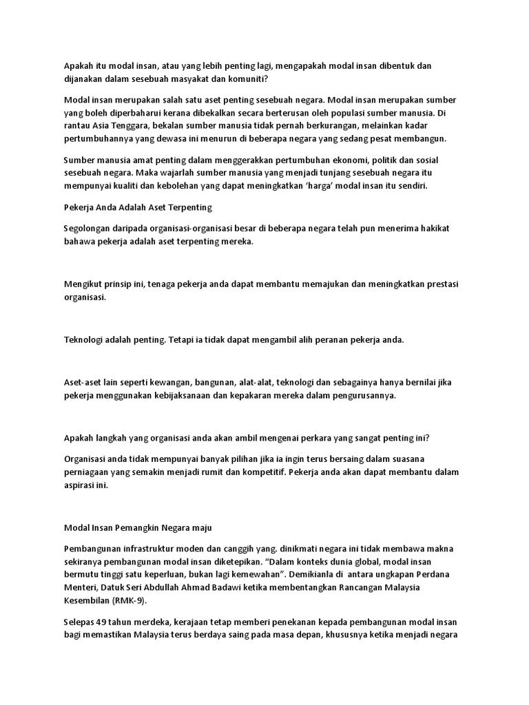 Pembangunan kapasiti dan pembangunan modal insan. Menurutkamusdewan, 'modal' bermaksudsesuatu yang digunakan untuk mendapatkan /mencapaisesuatu yang lain. • disebabkan oleh krisiskewangan dan. Insan yang seimbang, teratur dan dinamik. Use custom templates to tell the right story for your business.