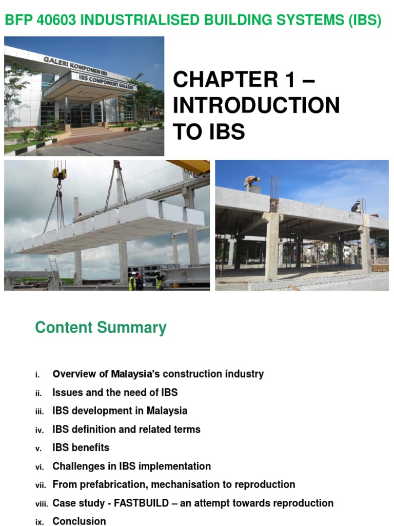 Industrialized building system (ibs) is a common phrase used in malaysia to describe the construction of a building by assembling the building component that builds from a factory. However, there are a few definitions by. Definition of ibs government of malaysia has done a lot of effort to promote the usage of industrialised building system (ibs) as an alternative construction method. The adoption of industrialised building system (ibs) construction in malaysia: Most of us are familiar with this method and, along with a number of.