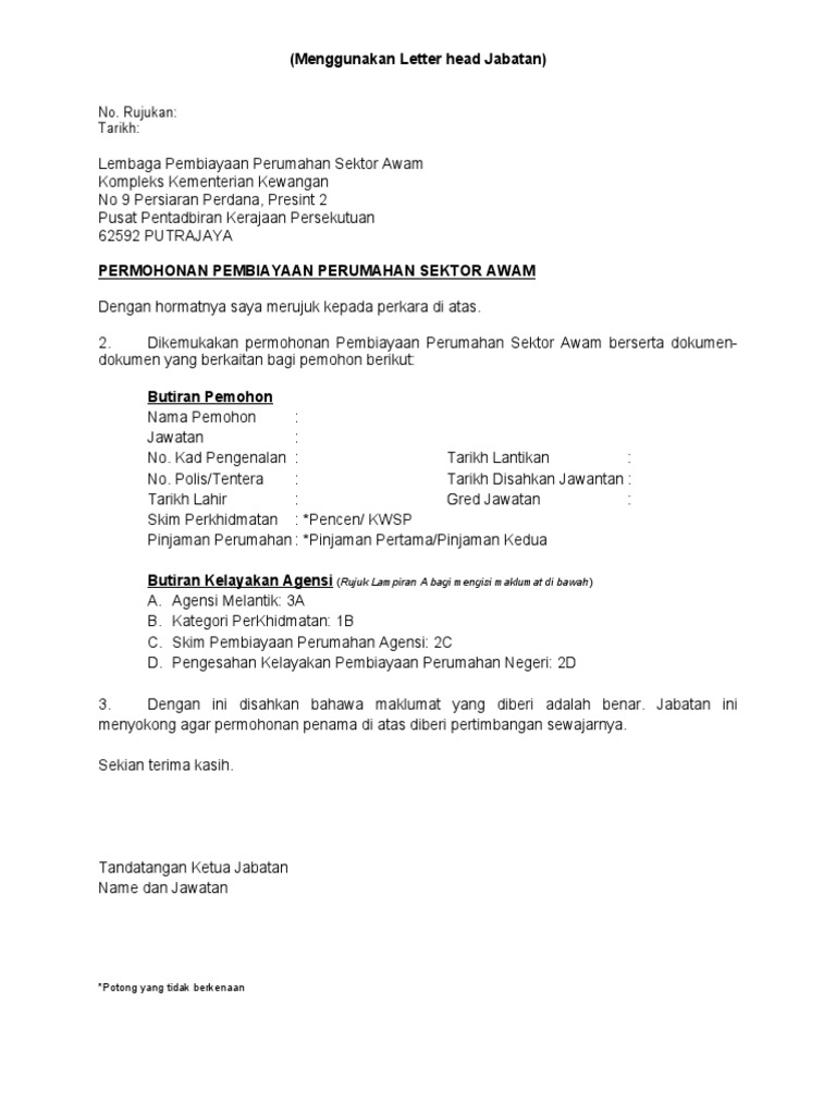 Hebahan Lembaga Pembiayaan Perumahan Sektor Awam from www.lppsa.gov.my Salinan pelan lantai / pelan bangunan. Contoh surat pengunduran diri dari jabatan. Salinan perjanjian jual beli ; Pengesahan bank client account peguam pemaju. Surat iringan daripada daripada ketua jabatan. Pembagian harta warisan masih menjadi hal yang sensitif di indonesia. Memohon pinjaman dengan bahagian pinjaman perumahan. Sebenarnya adakah aturan tentang batasan ketua rt boleh merujuk pada penjelasan di atas bahwa ketua rt termasuk pengurus lkd.