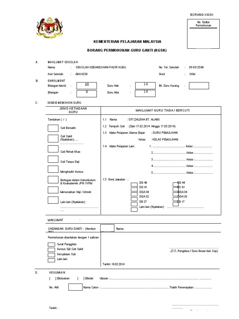 Related : Borang Permohonan Guru Ganti 2018 - 4 Borang Permohonan Guru Ganti Pdf - Jan 08, 2020 · permohonan guru ganti 2020..